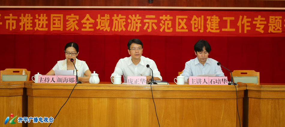 庞正华强调,当前,开平市推进国家全域旅游示范创建工作已经进入冲刺阶段,各级各部门务必要统一思想、提高认识、强化责任,扎实推进各项创建工作,共同朝着建设国家全域旅游示范区的目标攻坚。市政府将印发《创建国家全域旅游示范区迎检工作方案》及任务分解表,各级各部门要严格按照方案的部署要求,逐项对照、细化措施、狠抓落实。要通过融汇旅游要素、加强旅游营销、完善旅游服务、强化旅游执法,促进旅游业全区域、全要素、全产业链发展,确保今年全面完成示范区创建目标。