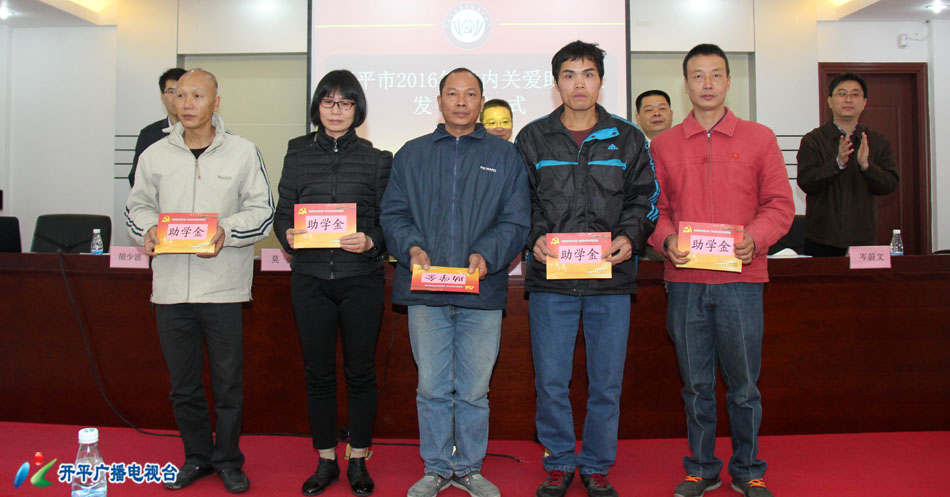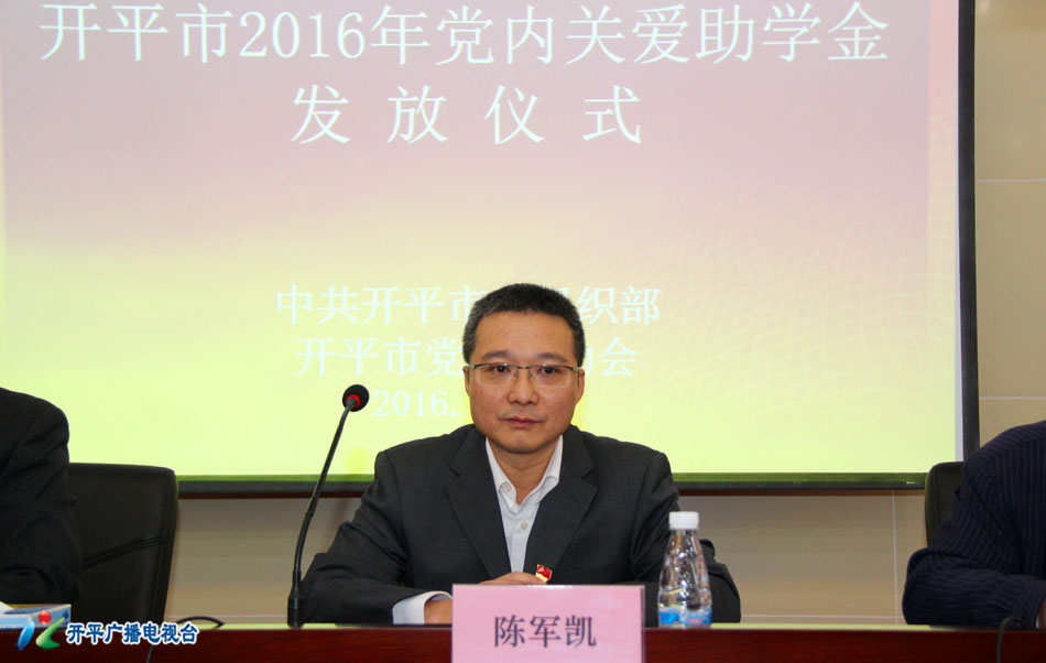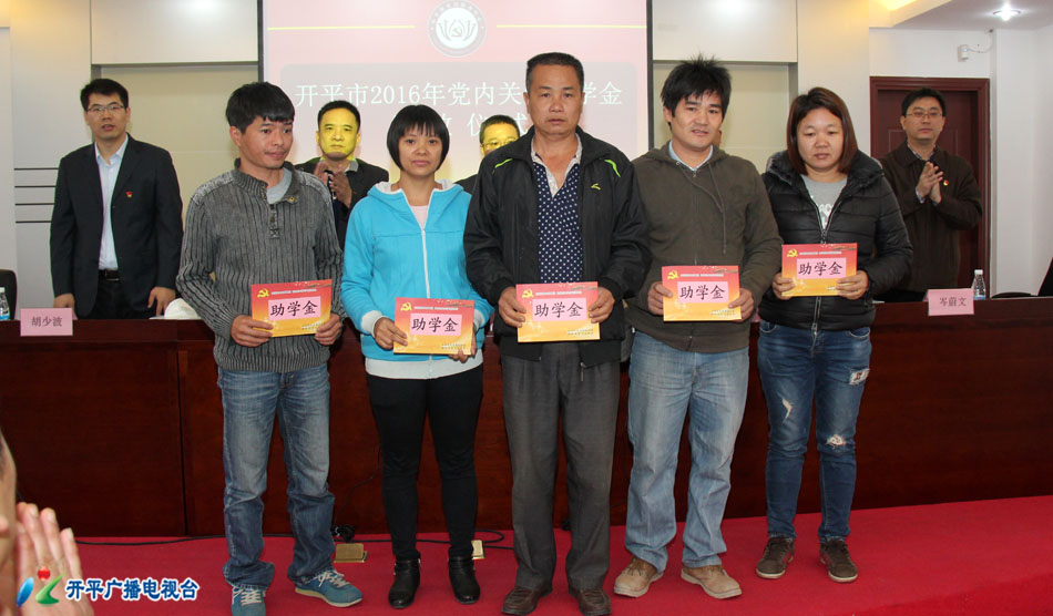 【开平广播电视台 余映意】12月2日上午,开平市举行2016年党内关爱助学金发放仪式,向全市40户特殊困难党员子女开展助学帮扶,发放助学金达10.9万元。开平市委常委、组织部部长陈军凯出席发放仪式。