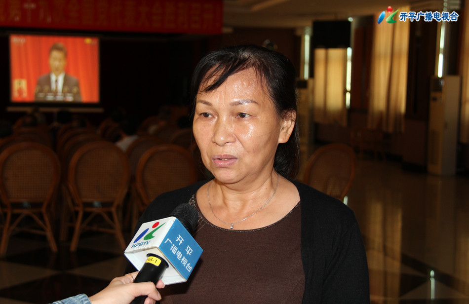开平市民 梁春花:期待十九大的政策将对我们市民有更加大的帮助,生活水平更上一层楼。