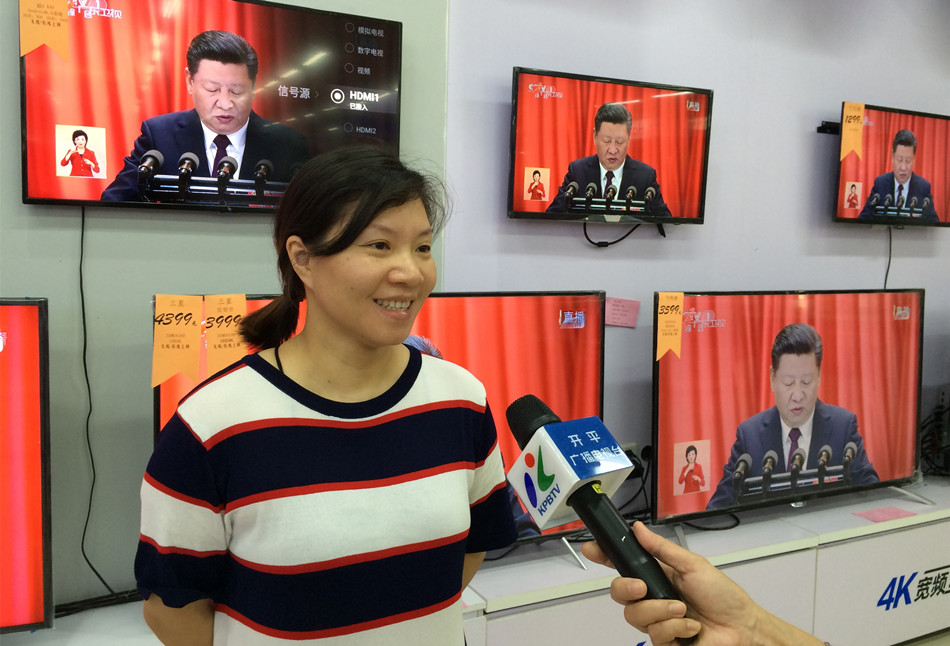 广东嘉士利食品集团有限公司车间主任 梁慧敏 :心情特别激动,差点流眼泪了。听了习总书记的报告,觉得作为一个中国人很自豪,因为现在世界上很多都是“中国制造”的品牌。