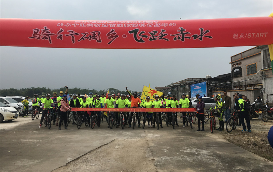 打响本次嘉年华头炮的是由市自行车运动协会协办的“十里骑行”,参加骑行的200多名骑手统一着装,在赤水镇大同里的日升楼前集合,骑着“爱车”出发,经过田间小道、圩镇市集,共同骑行十里乡道至林屋机场。