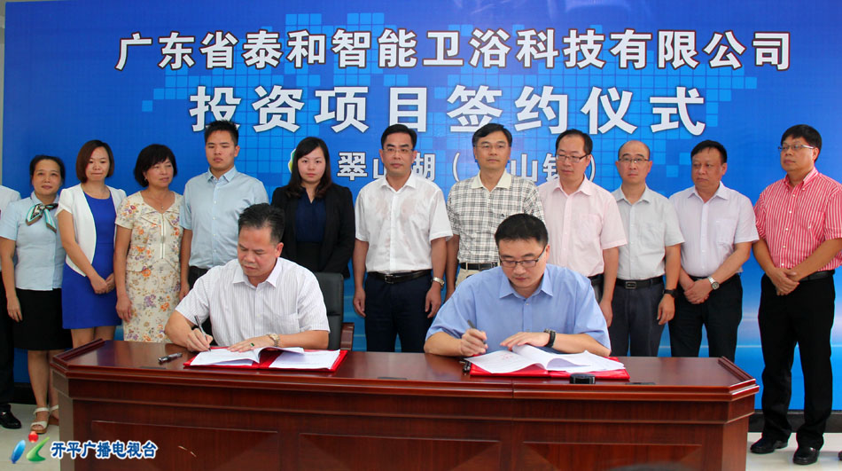 开平市委常委、翠山湖(月山镇)党委书记凌华威,市人大常委会副主任黄旭征出席签约仪式。月山镇党委副书记、镇长张拓天,泰和公司董事总经理梁健康,分别代表双方签订了投资合同。
