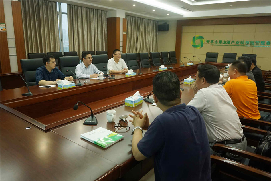 11月14日下午,深圳市派阁智能五金科技有限公司高层带领项目团队,来到开平翠山湖科技园进行实地投资考察。开平市委常委、翠山湖管委会主任凌华威,以及翠山湖党工委委员、管委会副主任劳振辉等有关领导,与派阁公司高层座谈,共商投资合作发展大计。