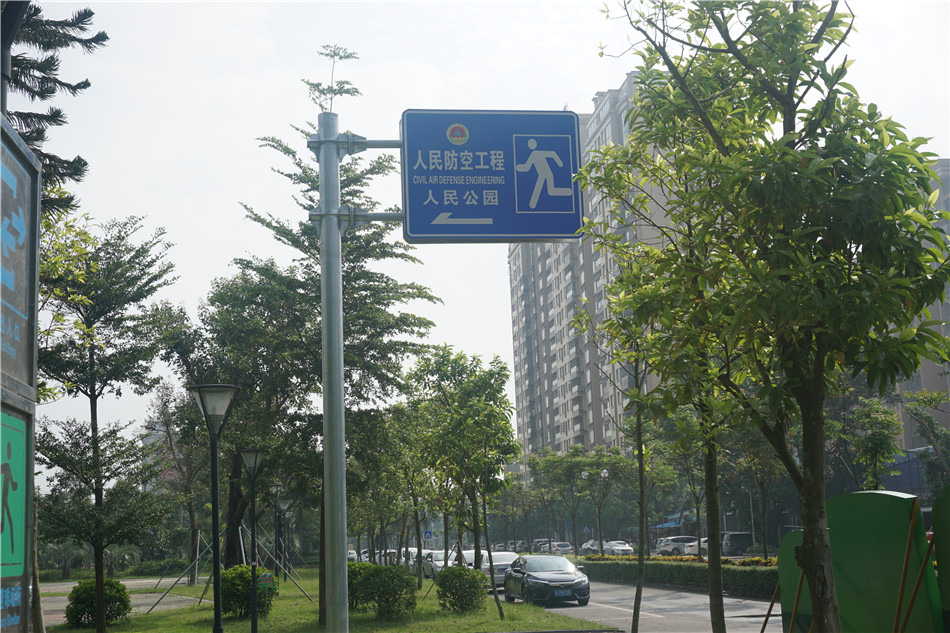 以市人民公园为例,公园的入口处设有指示牌,分别标有应急疏散场区、人民防空工程等清晰标示,即使在发生灾难时,市民也能够一目了然。